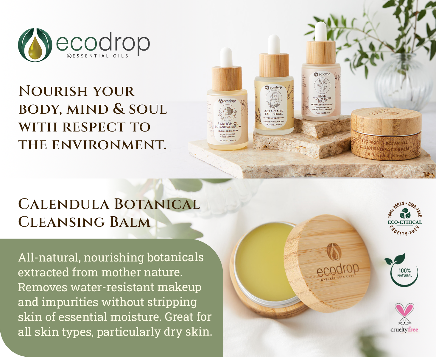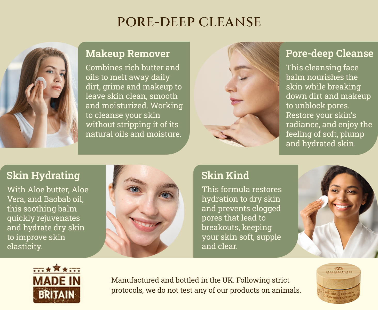 All-natural, nourishing botanicals extracted from mother nature. Made of luxurious, premium, active ingredients, our cleansing balm combines rich butters and oils to melt away daily dirt, grime and make-up to leave skin clean, smooth and moisturised.