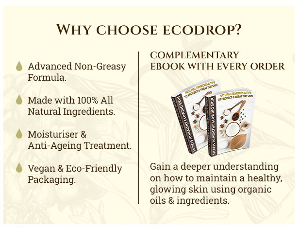 I've been using Ecodrop Organic Anti Ageing cream for 6 months now, and i love it. It really makes a noticeable difference to my skin. It makes my skin look healthier and smoother, its nice and light soft and smells nice to. I will not switch to any other product.