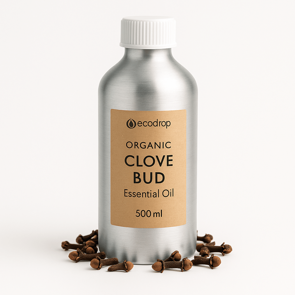 Ecodrop’s Organic Clove Bud Essential Oil 50ml is extracted from carefully selected, fully matured crimson red clove buds grown organically in India. These plantations are certified organic by the UK Soil Association. Harvested in spring and summer, the buds are sun-dried and undergo steam distillation to extract the most potent and pure essential oil. Known for its deep, warm, spicy scent, Clove Bud Essential Oil 50ml is valued for its medicinal and aromatic uses.