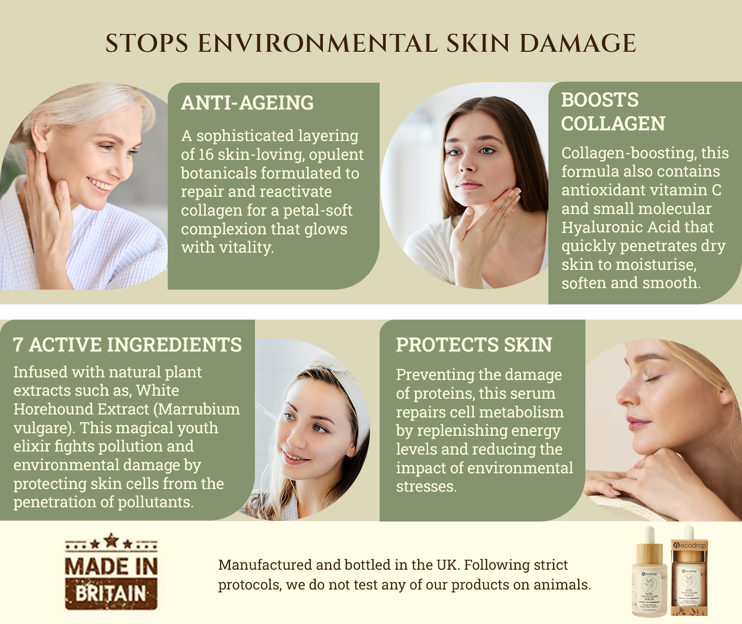 Infused with natural plant extracts such as, White Horehound Extract (Marrubium vulgare). This magical youth elixir fights pollution and environmental damage by protecting skin cells from the penetration of pollutants. Preventing the damage of proteins, this serum repairs cell metabolism by replenishing energy levels and reducing the impact of environmental stressses.